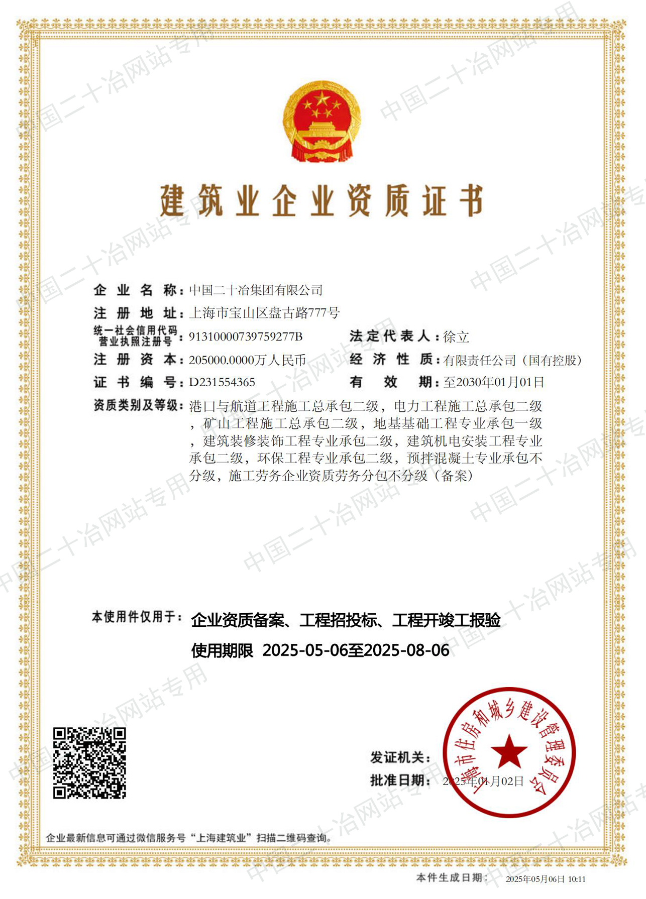 工程施工資質(上海市)