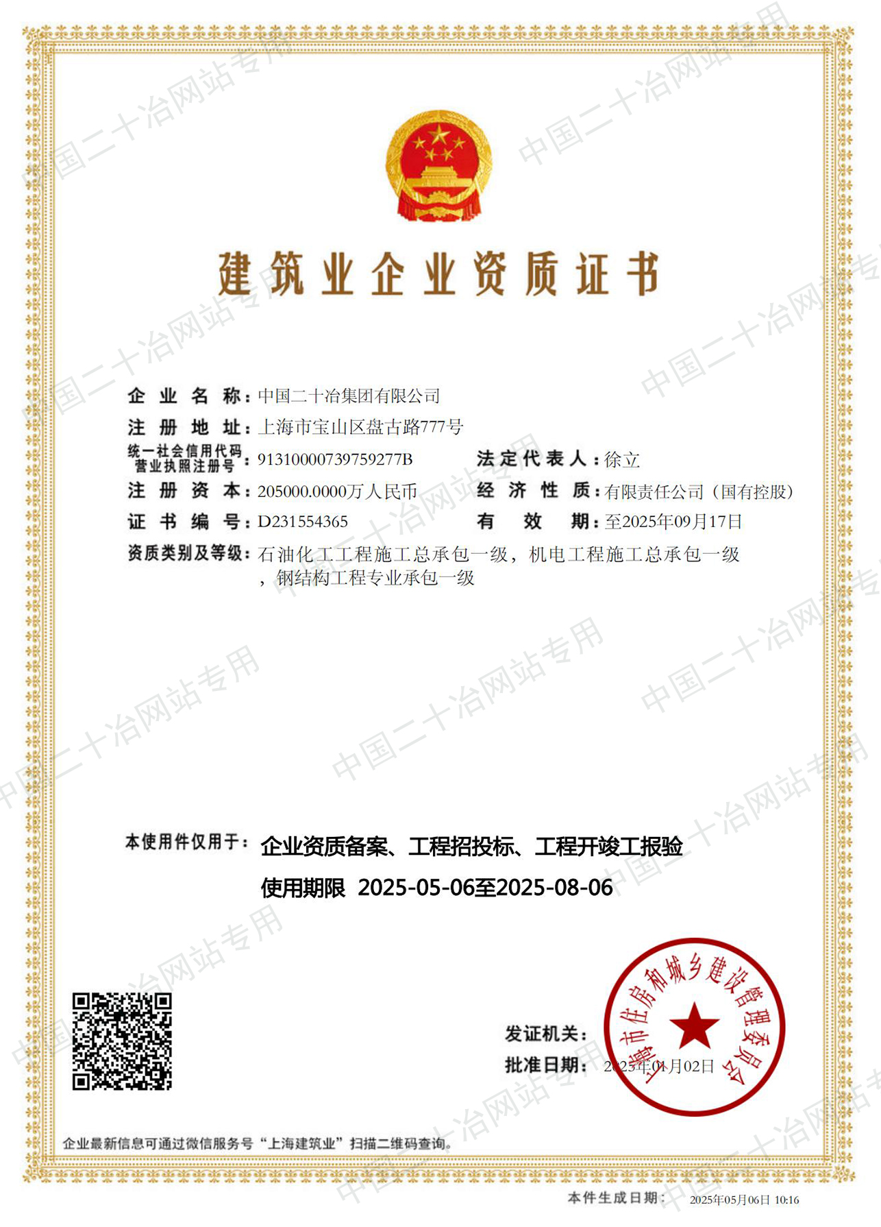 工程施工資質(上海市)